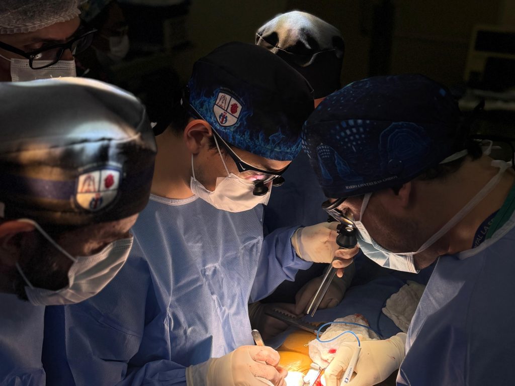 El tratamiento se estructuró en dos tiempos quirúrgicos, claramente diferenciados, pero estrechamente complementarios. El primer tiempo estuvo a cargo de cardiocirugía, liderados por los doctores Mario Contreras y Jorge Novoa, y se realizó mediante una esternotomía media, que permitió el acceso directo al corazón y a la aorta. En esta etapa se efectuó un debranching o desramificación del arco aórtico, un procedimiento que consiste en redirigir las arterias que nacen desde un segmento enfermo de la aorta hacia una zona sana, utilizando prótesis vasculares.