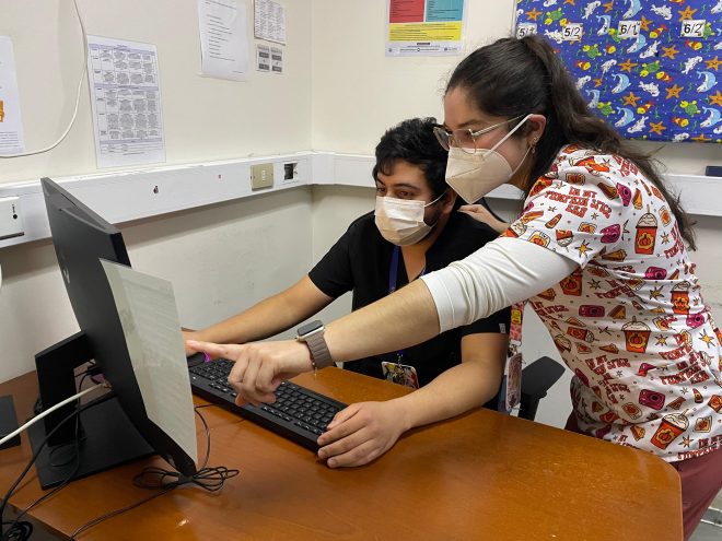 En tanto, las capacitaciones del personal comenzaron con los funcionarios de las tres Urgencias (infantil, adultos y ginecología y obstetricia), las que se realizaron en el mes de octubre. El plan formativo contempla un total de 20 horas de capacitación certificadas, que se dividen en dos partes. Primero participan en un taller teórico práctico de 4 horas presenciales, donde realizan pruebas con diversos casos de uso para familiarizarse con la herramienta. Luego continúan con 16 horas de estudio en módulos asincrónicos, para finalizar con una prueba que certifica que están aptos para usar la herramienta.