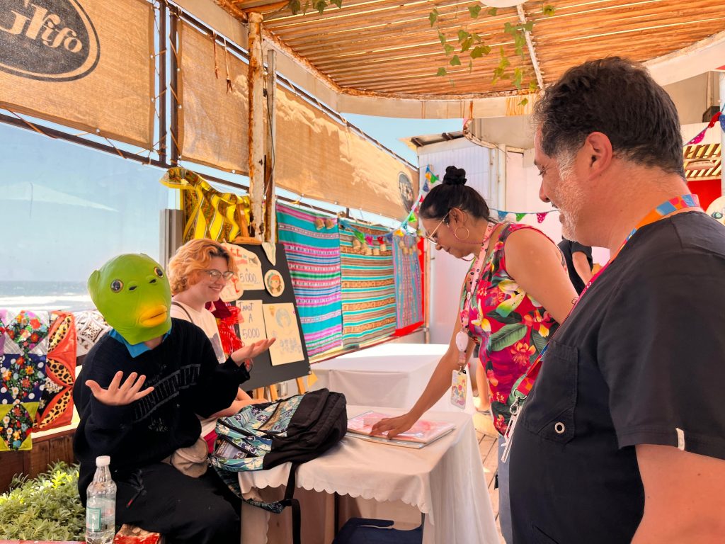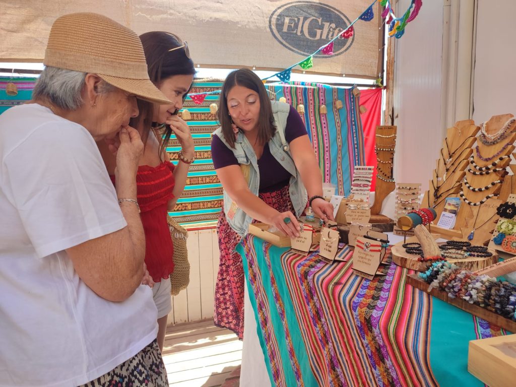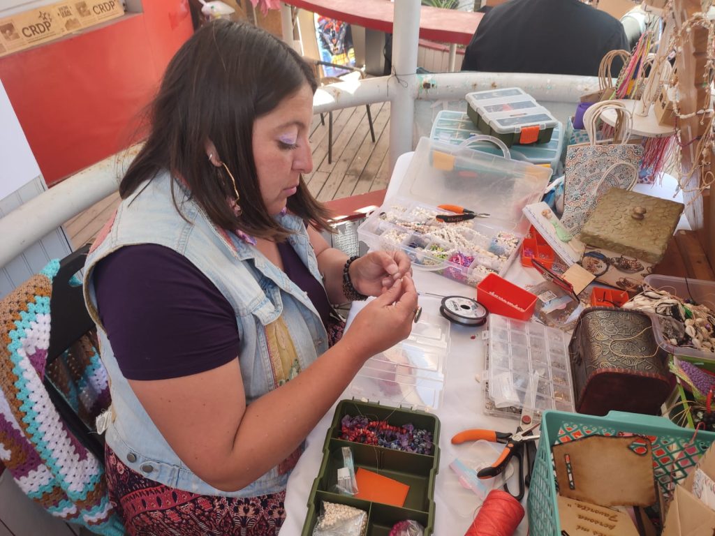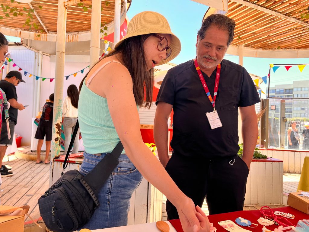 La experiencia de Pía, en tanto, se vincula a la elaboración y personalización de productos, un trabajo que le permite interactuar directamente con quienes los solicitan y establecer un vínculo cercano con cada cliente. El contacto con turistas y visitantes durante la feria se transformó en una oportunidad para desarrollar habilidades sociales, comunicativas y comerciales, además de reafirmar su motivación por continuar creciendo.